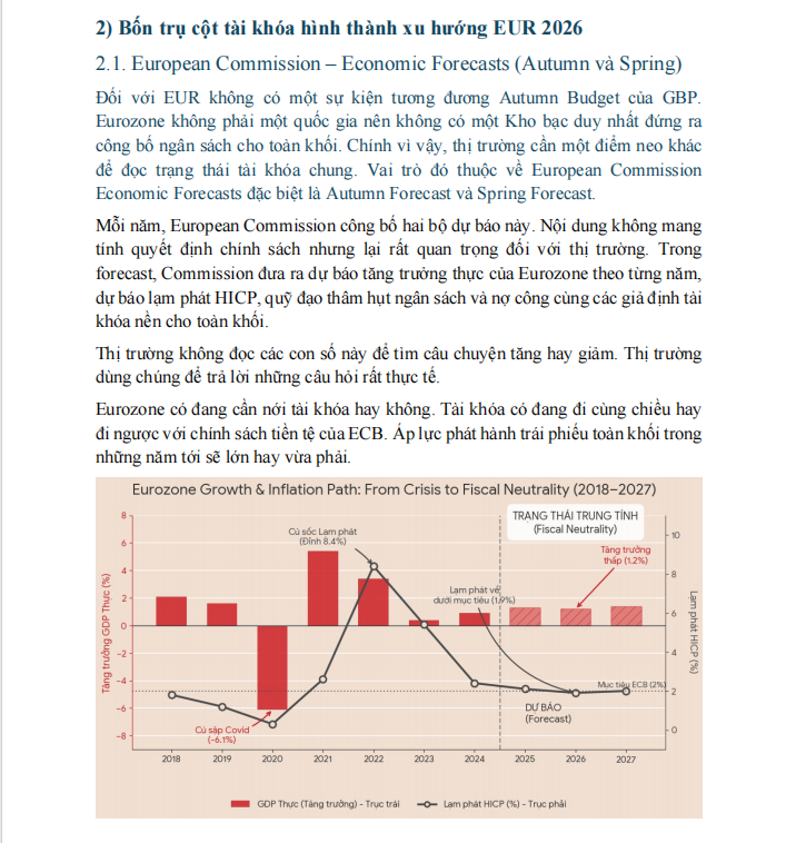 Tóm lại, các con số trên không phải để trả lời câu hỏi thị trường ngày mai sẽ đi đâu. Chúng là data macro dùng để luận giải, để hiểu cách thị trường đang nhìn EUR trong năm 2026. Và khi cách nhìn đó thay đổi, các cặp như EURAUD, EURJPY, EURCHF thường di chuyển theo những nhịp mà nếu chỉ đọc tin hằng ngày sẽ rất khó hiểu.